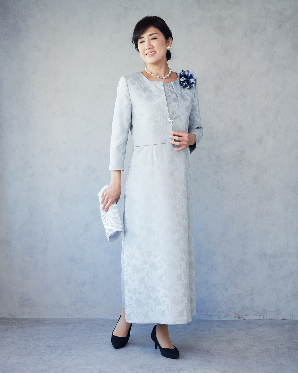 水色系(ワンピース黒) 料金:38,500円 サイズ:9号,11号,13号,15号 スカート丈直し:不可 対応身長:148㎝~170㎝