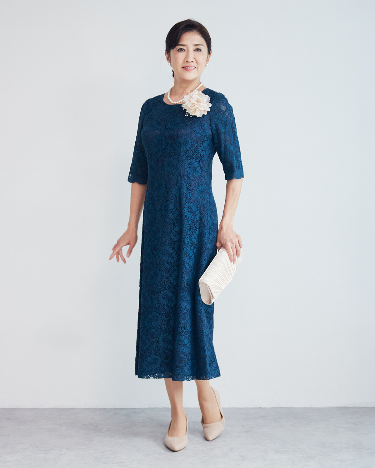 ネイビー系 料金:55,000円 サイズ:7号,9号,11号,13号,15号,17号 スカート丈直し:可 対応身長:152㎝~172㎝
