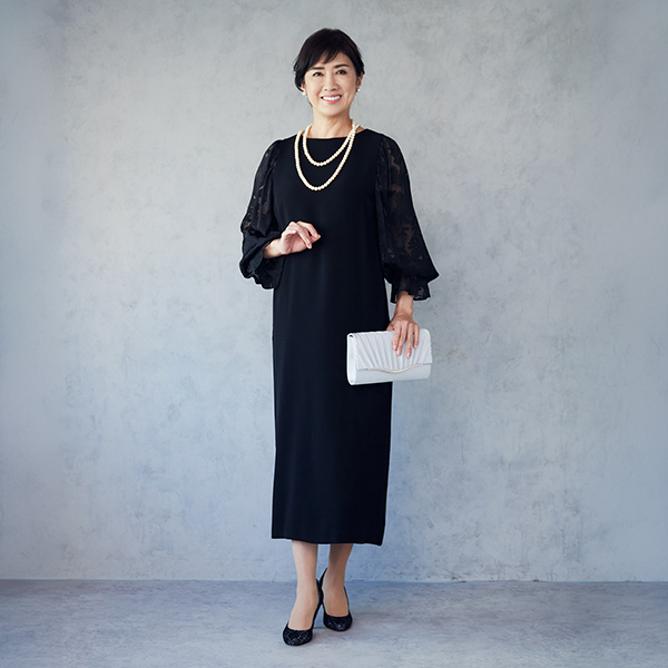 ベージュ系(ワンピース黒) 料金:38,500円 サイズ:9号,11号,13号,15号 スカート丈直し:不可 対応身長:148㎝~170㎝