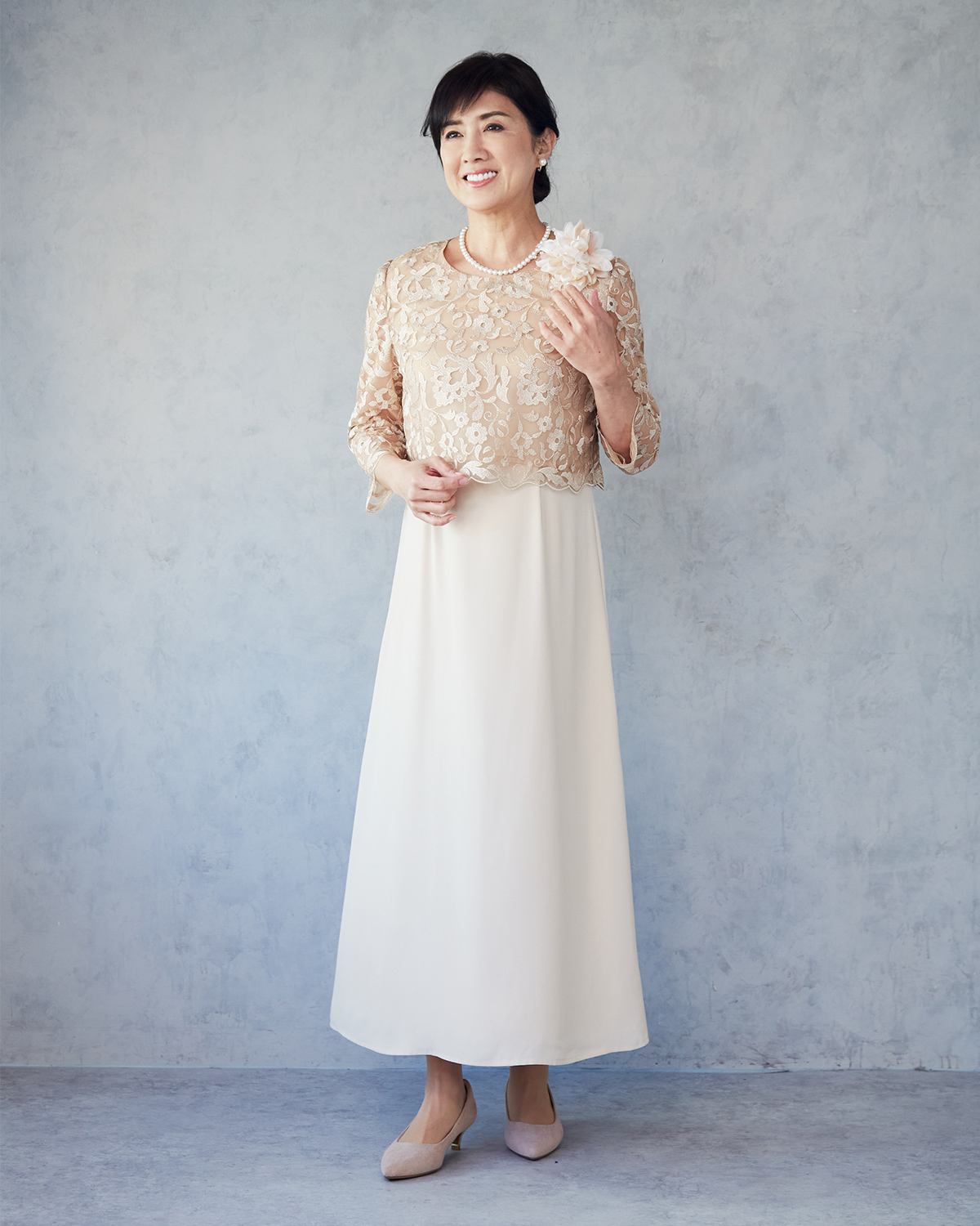 ベージュ系 料金:60,500円 サイズ:9号,13号 スカート丈直し:可 対応身長:152㎝~172㎝